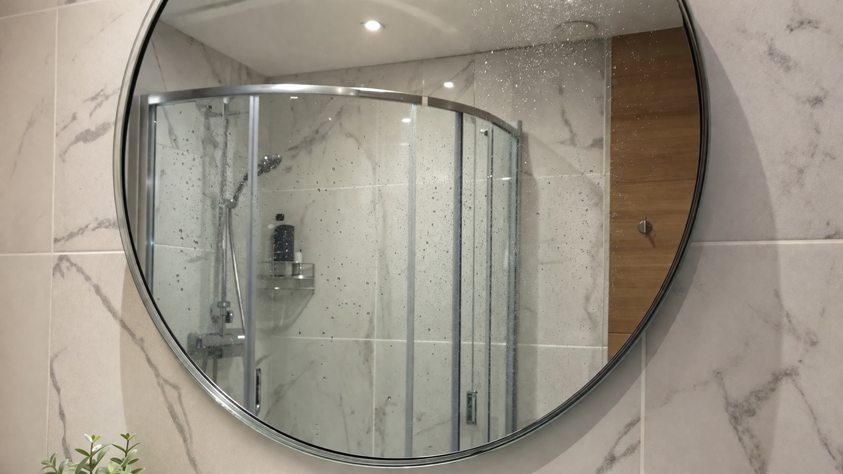 Orice oglindă din baie acționează ca un magnet puternic pentru umezeală. Când faceți un duș fierbinte, geamul rece este instantaneu acoperit de umiditate. condens. Dacă această apă este lăsată să se usuce în mod natural, mineralele pe care le conține se încorporează permanent în suprafață. Rezultatul este o sticlă tulbure acoperită cu picături albe, care în timp devin din ce în ce mai greu de îndepărtat cu un burete.