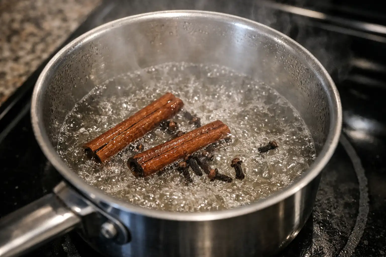 Procesul este incredibil de simplu. Turnați apă într-o cratiță mică, adăugați o cantitate generoasă de oțet și amestecați condimentele. Aduceți amestecul la fierbere și lăsați-l pe foc mic.