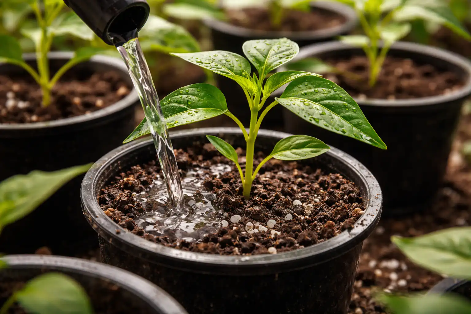 Imediat după mutarea plantelor în noile recipiente, trebuie creat un mediu de seră blând. În această perioadă umiditatea aerului joacă un rol mai important decât umiditatea substratului în sine.