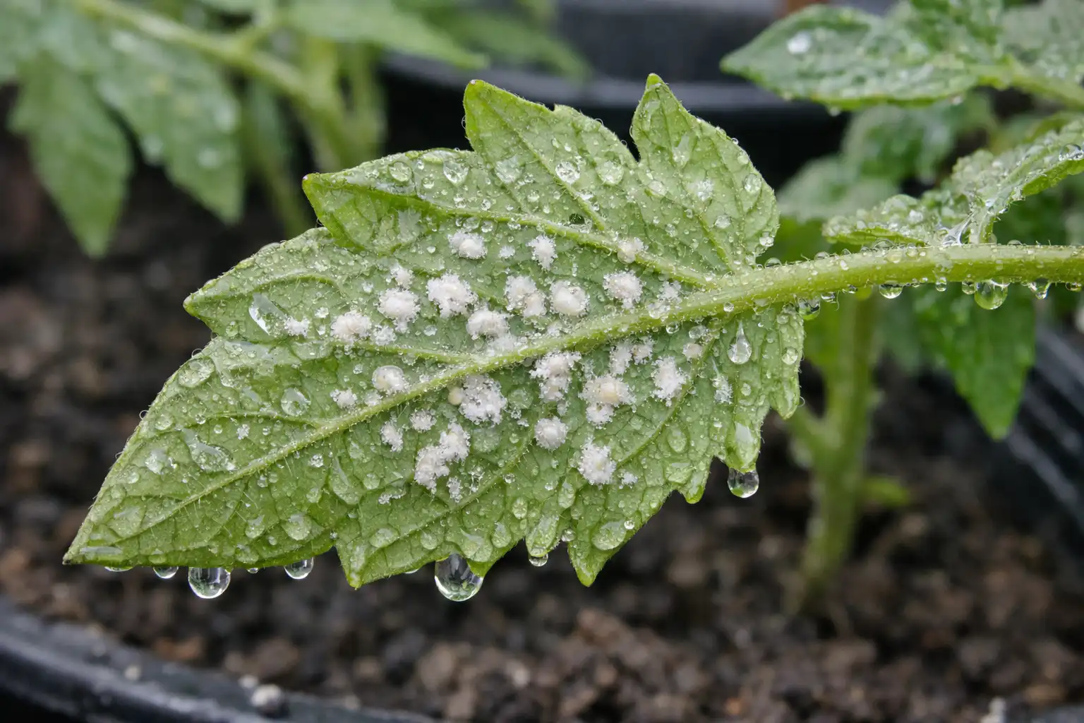 Cea mai eficientă metodă de a elimina musculița albă de pe răsadurile de tomate constă în utilizarea unui concentrat de usturoi maturat timp de cinci zile, combinat cu un adeziv organic, aplicat obligatoriu pe partea inferioară a frunzelor prin pulverizare fină sub presiune.