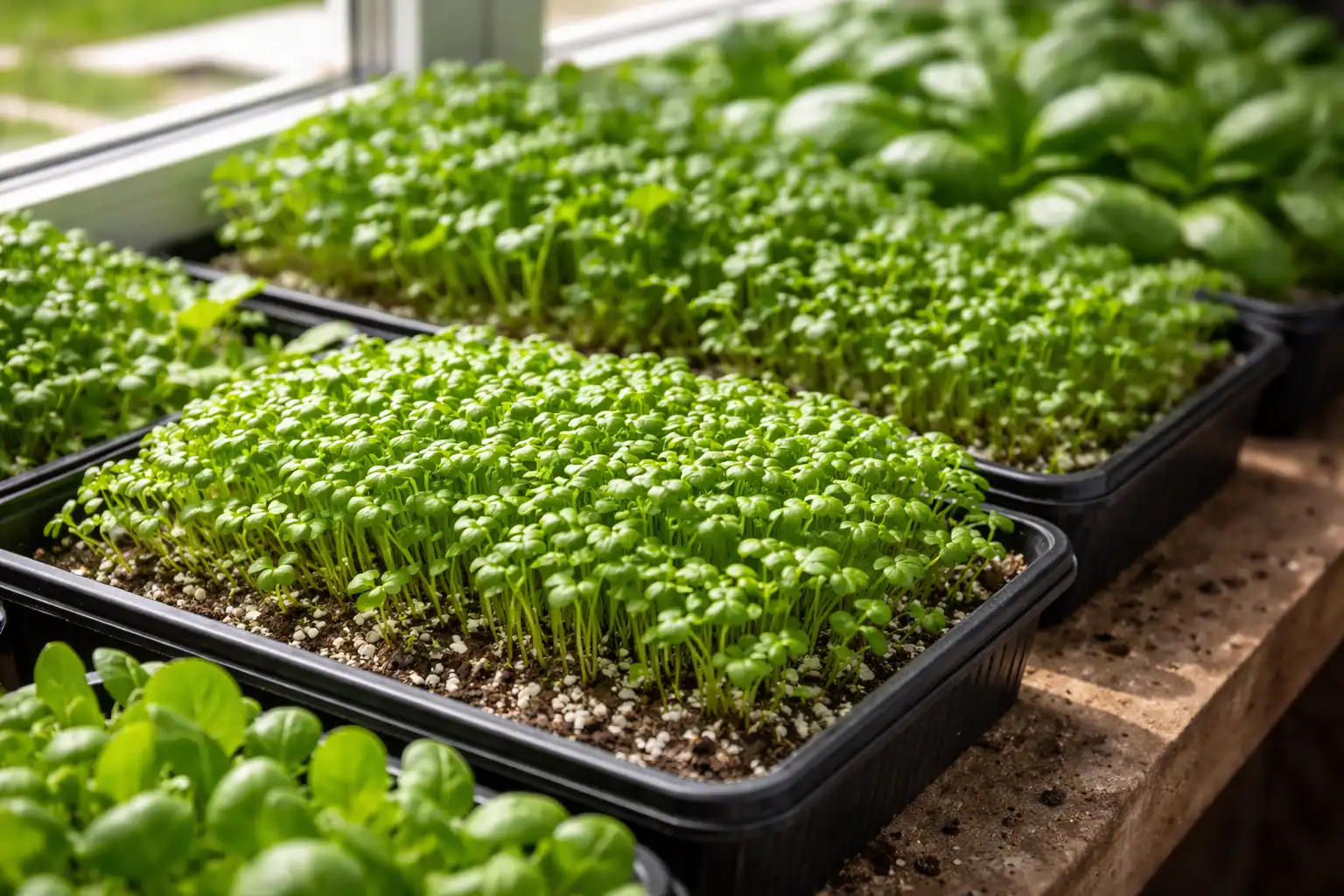 Secretul unui început rapid constă în selectarea corectă a semințelor. Nu vă apucați imediat de plante capricioase, este mai bine să acordați prioritate culturilor care iartă greșelile începătorilor. Se arată excelent creson, frunze de muștar и rucola. Acestea au o vigoare de germinare ridicată și formează un capac dens încă din stadiile incipiente.