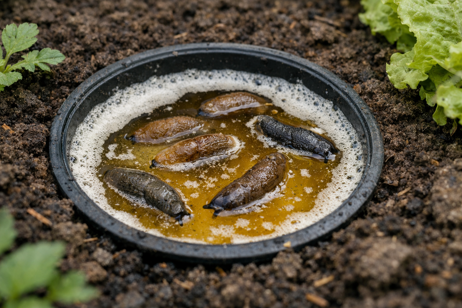 Baza acestui lifehack se află în instinctele naturale ale dăunătorilor. Drojdia и malț acționează ca un magnet incredibil de puternic pentru ele. Mirosul fermentației active atrage moluștele de pe un teritoriu vast, făcându-le să ignore chiar și cele mai suculente frunze tinere de varză sau salată.
