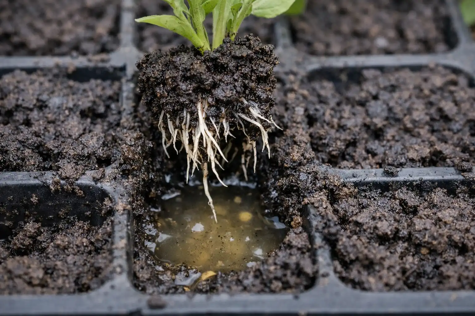 Verificarea și curățarea găurilor de drenaj din partea de jos a cupei pentru răsaduri