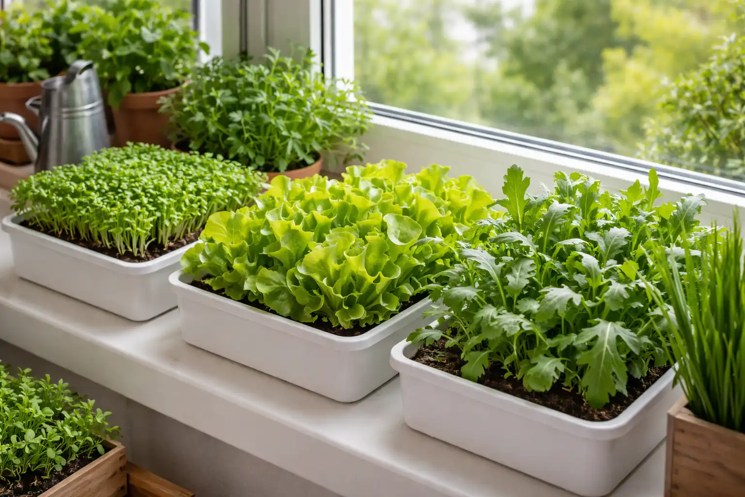 Alegerea culturilor potrivite pentru un start rapid Pentru a evita așteptarea cu săptămânile a primilor muguri, este important să plantați plante cu un sezon de creștere scurt. O alegere excelentă ar fi microgreens și soiuri de salate cu frunze cu maturare timpurie.