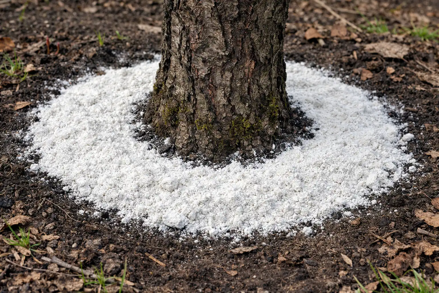 Întindeți pudra minerală uniform în jurul întregului perimetru al sistemului radicular