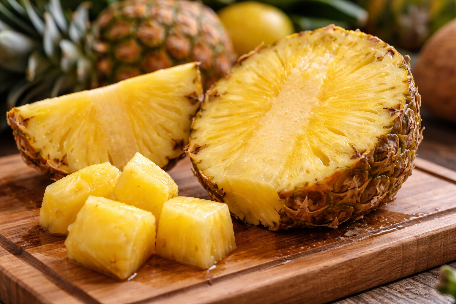 Principala valoare a acestui fruct colorat constă în concentrația ridicată a unei substanțe unice. Bromelaina – este o enzimă proteolitică vegetală care descompune instantaneu compușii proteici complecși în aminoacizi simpli. Dacă ați mâncat o porție consistentă de carne, câteva felii de ananas proaspăt vă vor ajuta stomacul să facă față încărcăturii fără balonare sau disconfort.