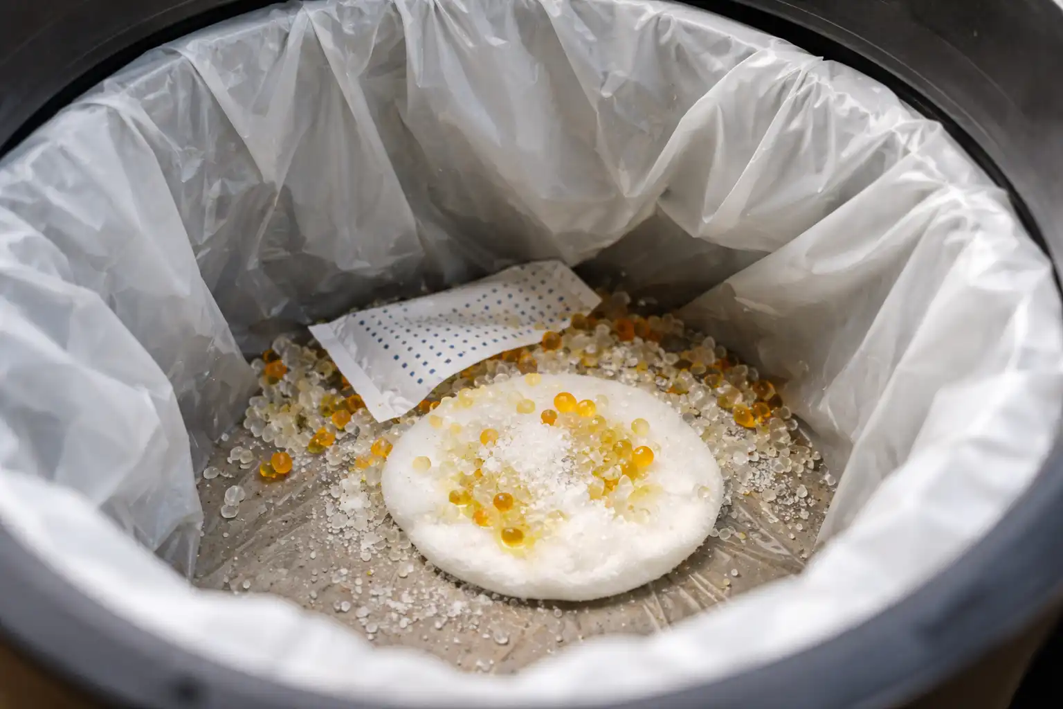 Silicagelul este un desicant industrial care atrage umiditatea din aer mult mai rapid decât materialele organice, prevenind astfel procesul de putrefacție.