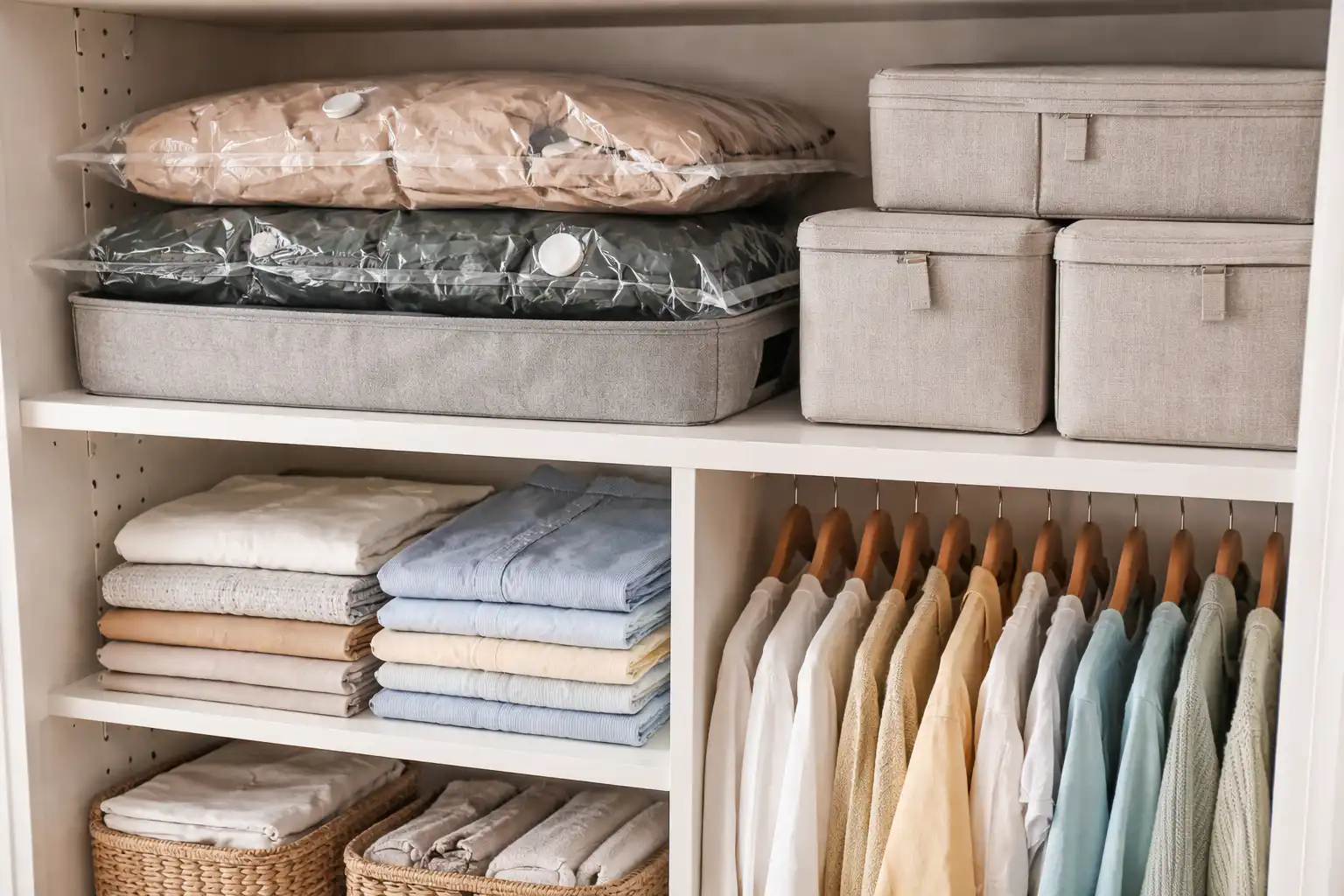 Folosiți pungi vidate pentru jachete voluminoase și pături groase