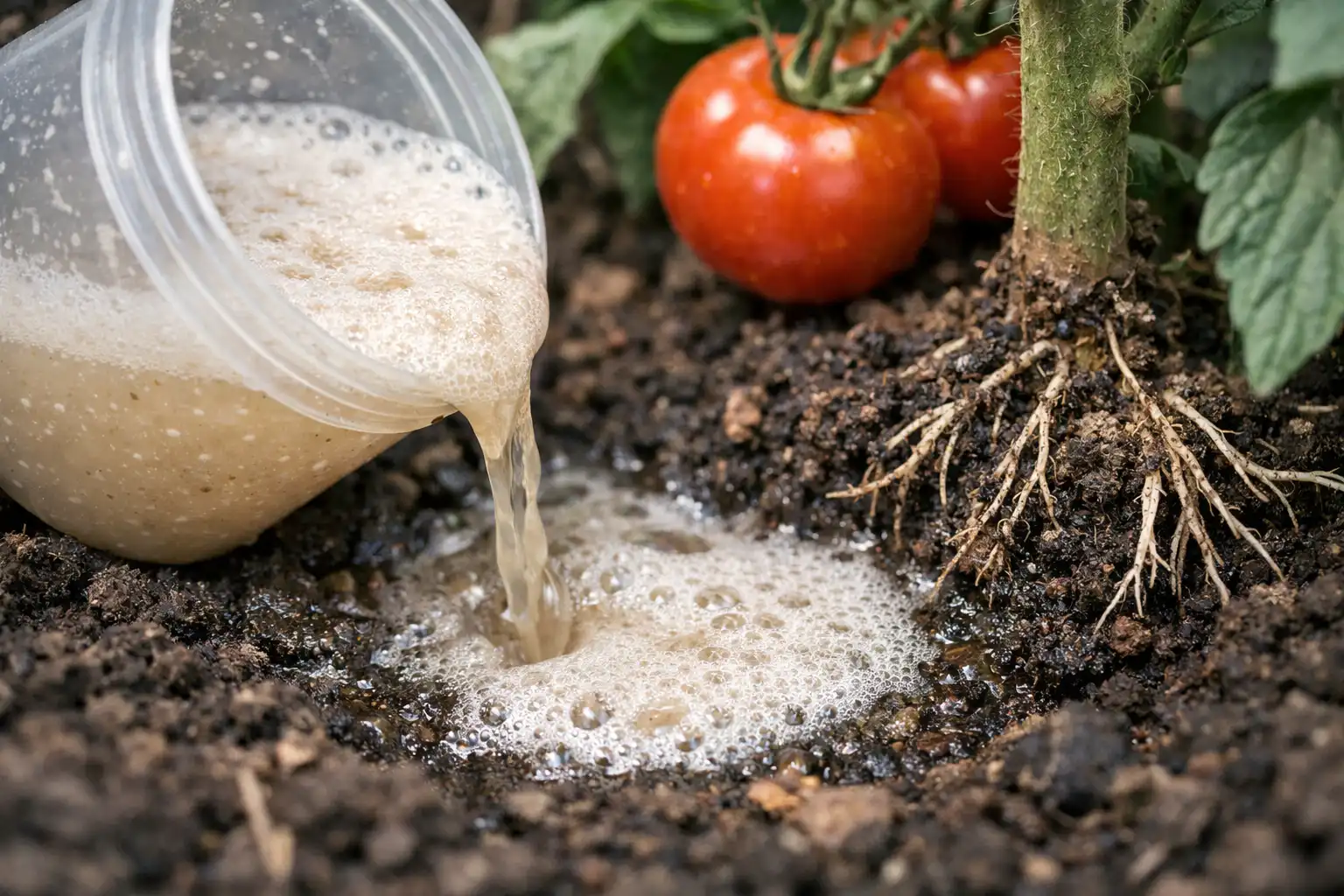 Drojdia de panificație obișnuită funcționează ca un stimulent biologic puternic pentru sol. Odată ajunsă în sol, aceasta activează procesarea materiei organice, eliberând azot și fosfor într-o formă ușor digerabilă pentru sistemul radicular al tomatelor. Tufele încep să crească activ masa verde, iar tulpinile devin vizibil mai groase și mai puternice.