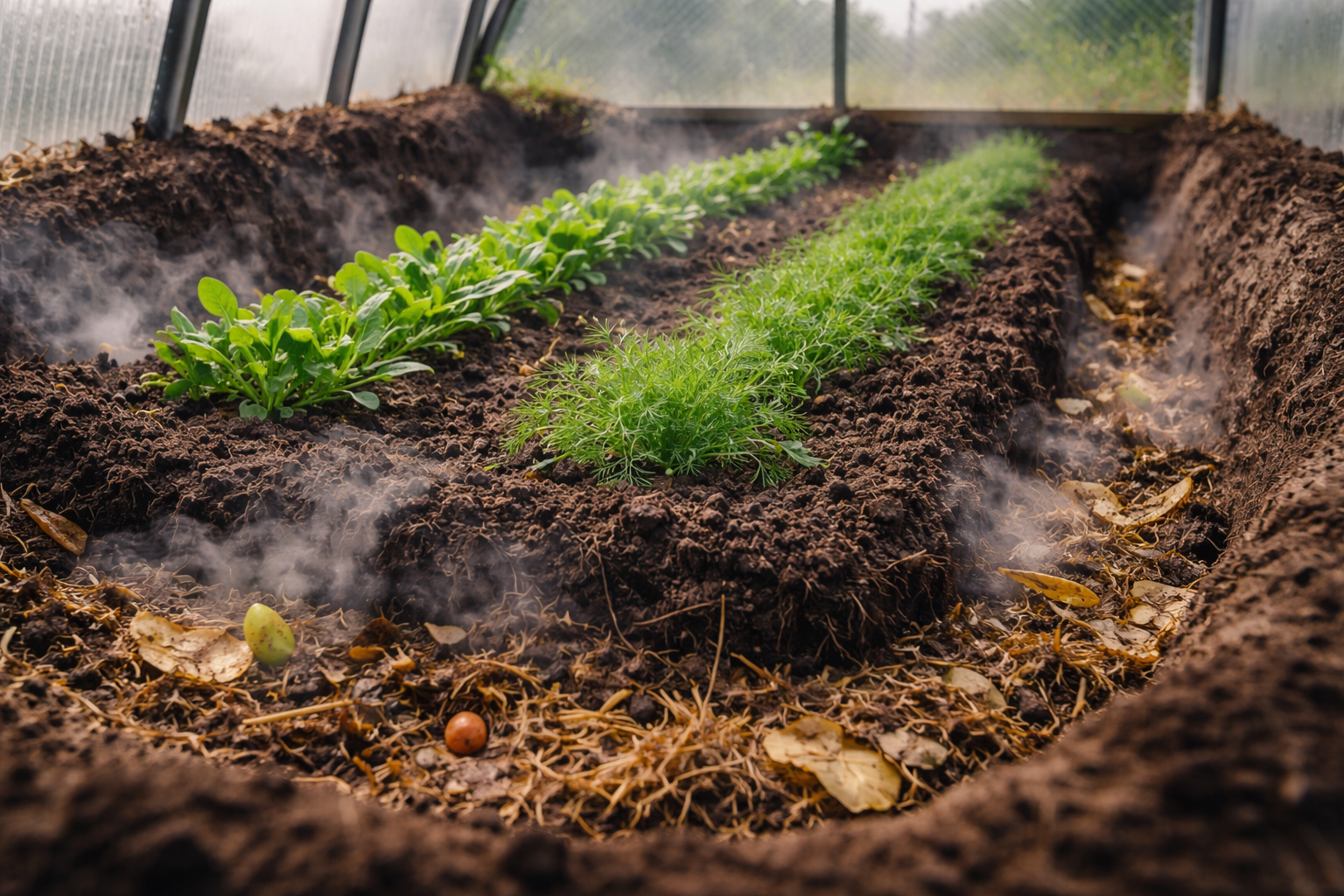 Pentru a dezgheța solul în câteva zile, este necesar să se utilizeze biocombustibili. Descompunerea naturală a materiei organice eliberează căldură care va încălzi rădăcinile viitoarelor plante și le va proteja de dedesubt.
