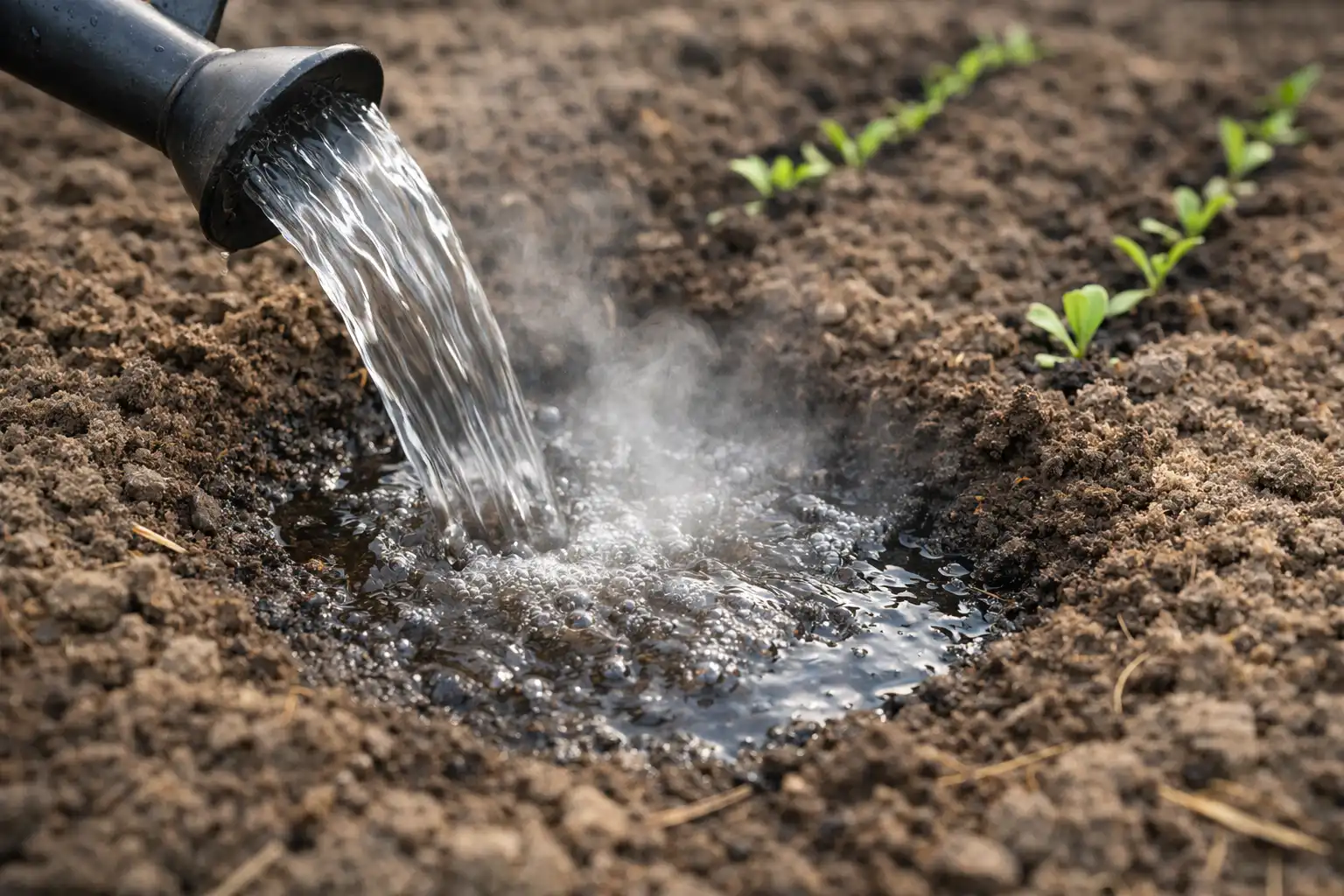Apa clocotită este recomandată exclusiv pentru dezinfectarea paturilor goale înainte de plantare, pentru a elimina dăunătorii care au iernat în sol.