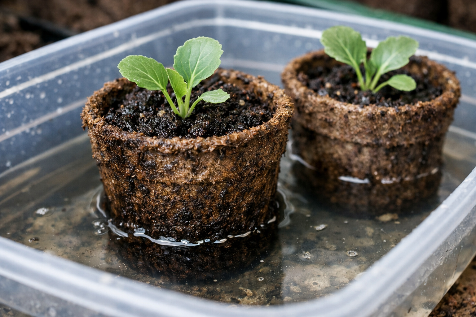 Principala caracteristică a turbei comprimate este capacitatea sa de a absorbi instantaneu umiditatea din mediu. Dacă aerul din cameră este uscat, pereții cupei încep să extragă activ apa din sol. Acest lucru duce la o imperceptibilă desecarea rădăcinilorchiar dacă suprafața solului pare ușor umedă. Varza este extrem de iubitoare de apă, iar cel mai mic deficit de apă va face ca cotiledoanele să se ofilească și să nu mai crească.