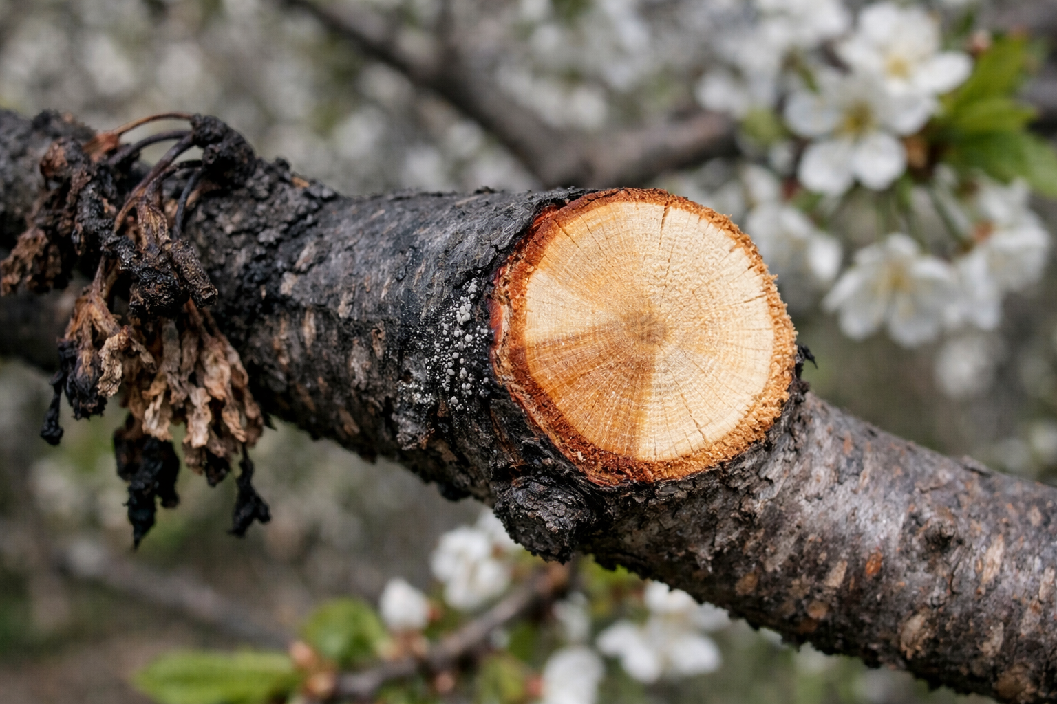 Principalul secret al unui control reușit constă în tăierea imediată. De îndată ce observați prima crenguță micșorată, tăiați-o, luând cel puțin zece centimetri de lemn cu aspect perfect sănătos, altfel ciuperca își va continua drumul spre trunchi.