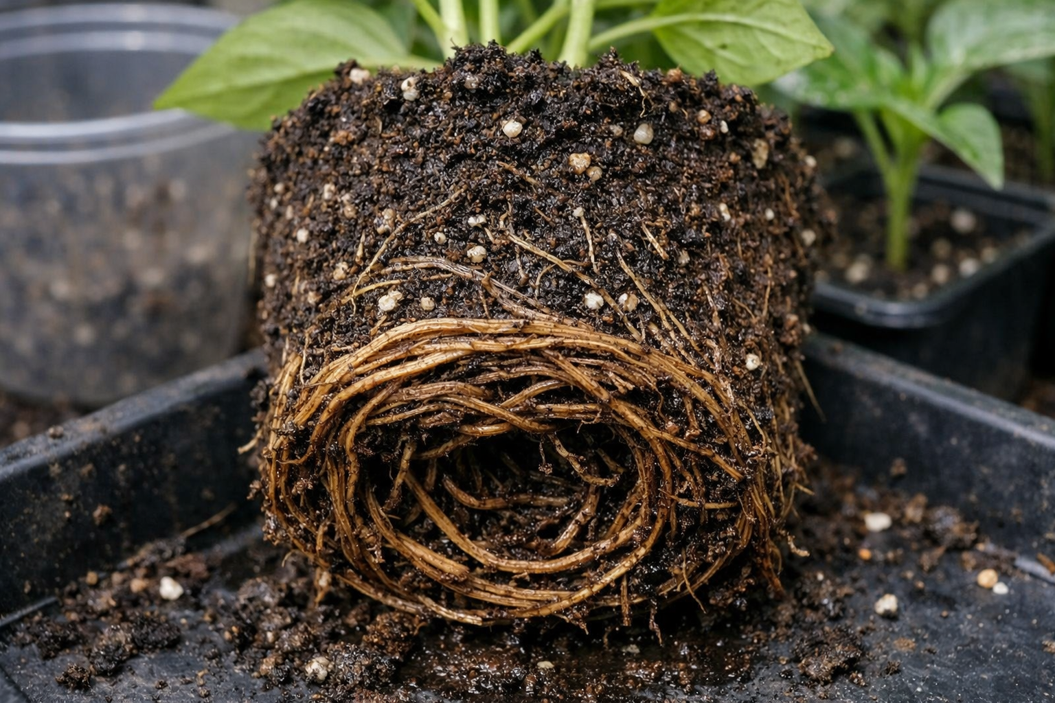 Nuanță secretă: nu descâlciți niciodată rădăcinile răsucite ale ardeiului atunci când îl transplantați dintr-o sticlă înghesuită pentru a evita provocarea de microtraume. Transplantați pur și simplu bulgări de pământ Întreaga aglomerare de pământ într-un recipient nou, mai mare, umplând cu grijă golurile cu pământ ușor.