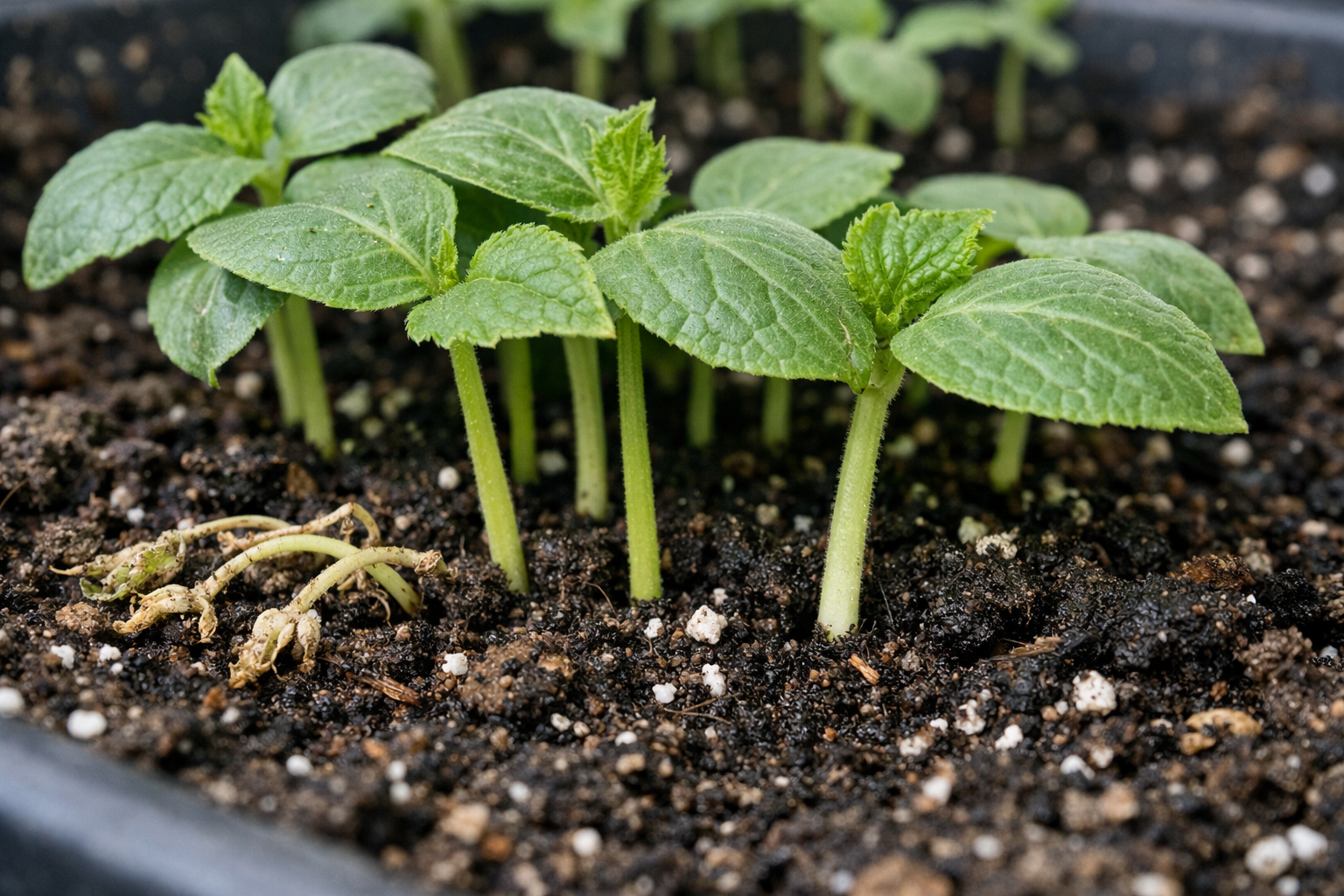 Culturile dense fac ca răsadurile să concureze pentru lumină și nutriție