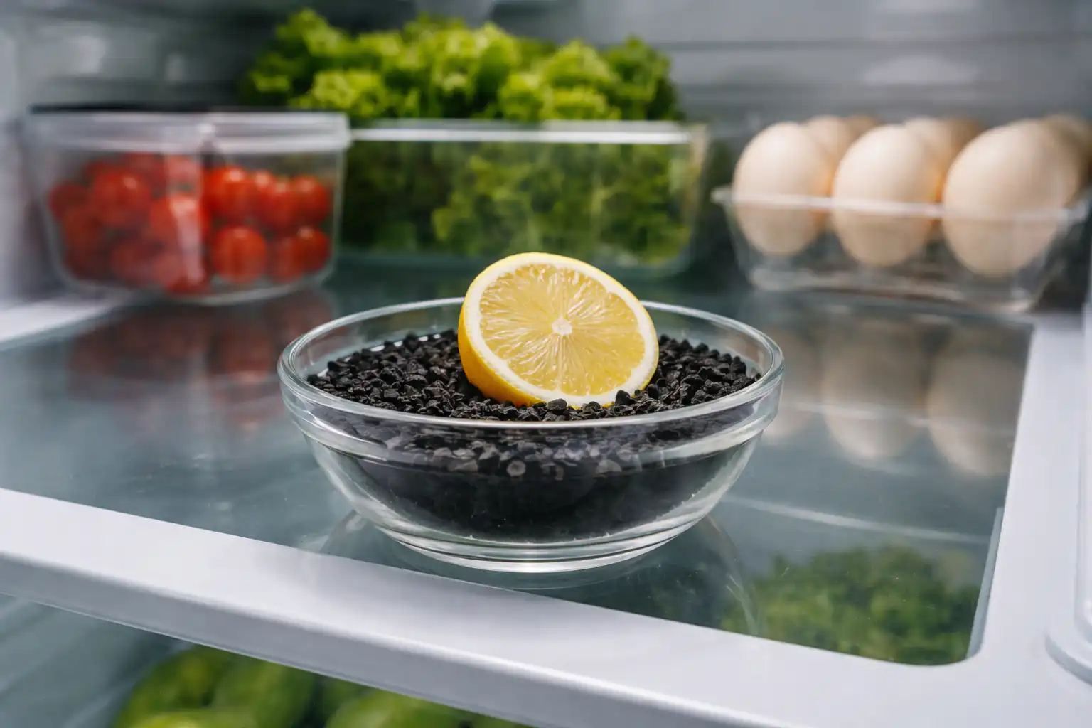 Cea mai eficientă soluție pentru a elimina rapid orice miros neplăcut din frigider este utilizarea pudrei de cărbune activ combinată cu acid citric, care neutralizează moleculele volatile în loc să le mascheze.