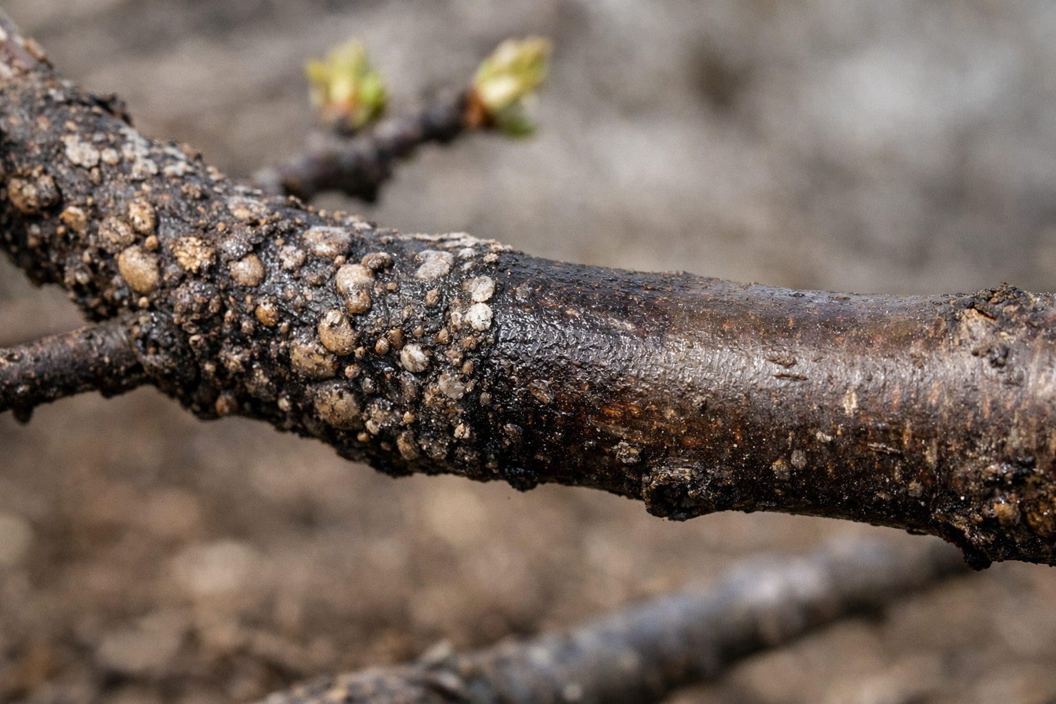 Frecați ușor excrescențele vizibile de pe trunchi și de pe ramurile scheletice cu o perie dură