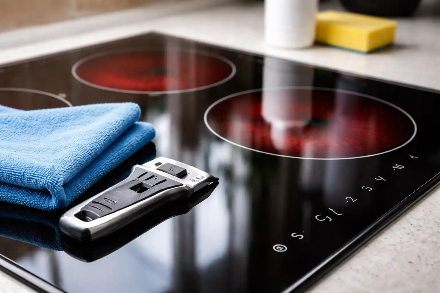 Racletă pentru sticlă ceramică taie ușor funinginea densă fără a deteriora suprafața netedă.