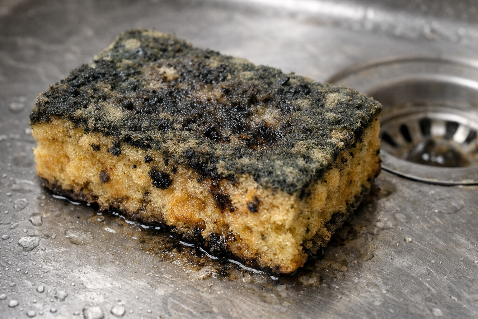 Nu lăsați niciodată cauciuc spumant umed pe fundul chiuvetei, este incubatorul perfect pentru germeni.