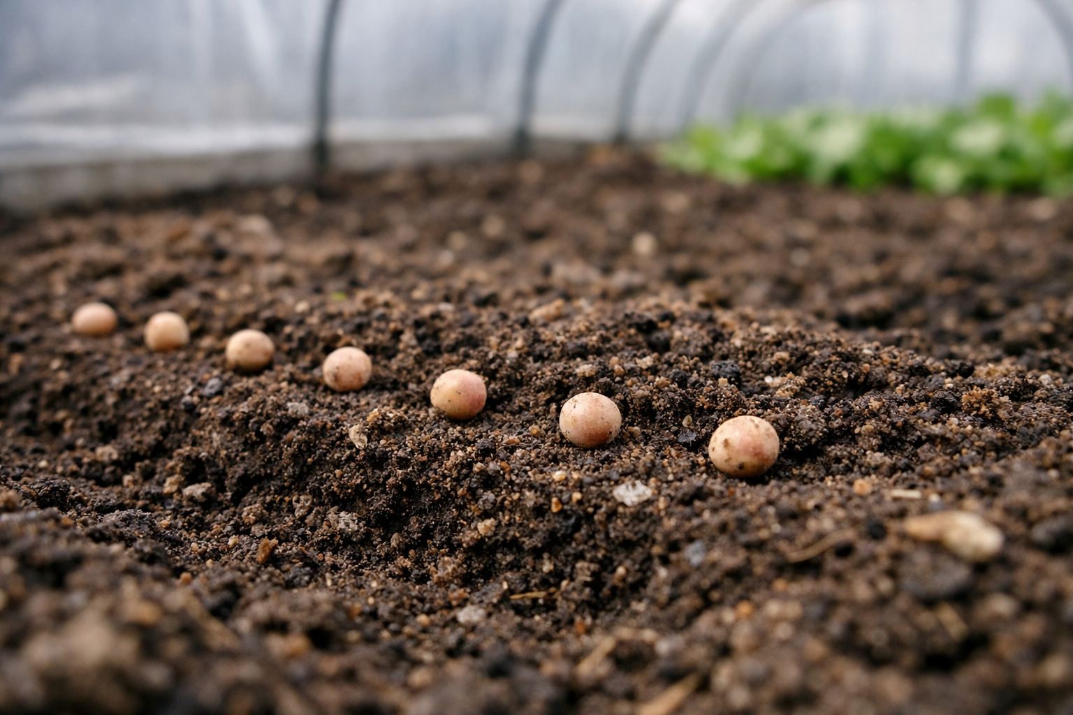 Compactați ușor solul cu palma după plantare pentru un contact mai bun al semințelor cu solul.