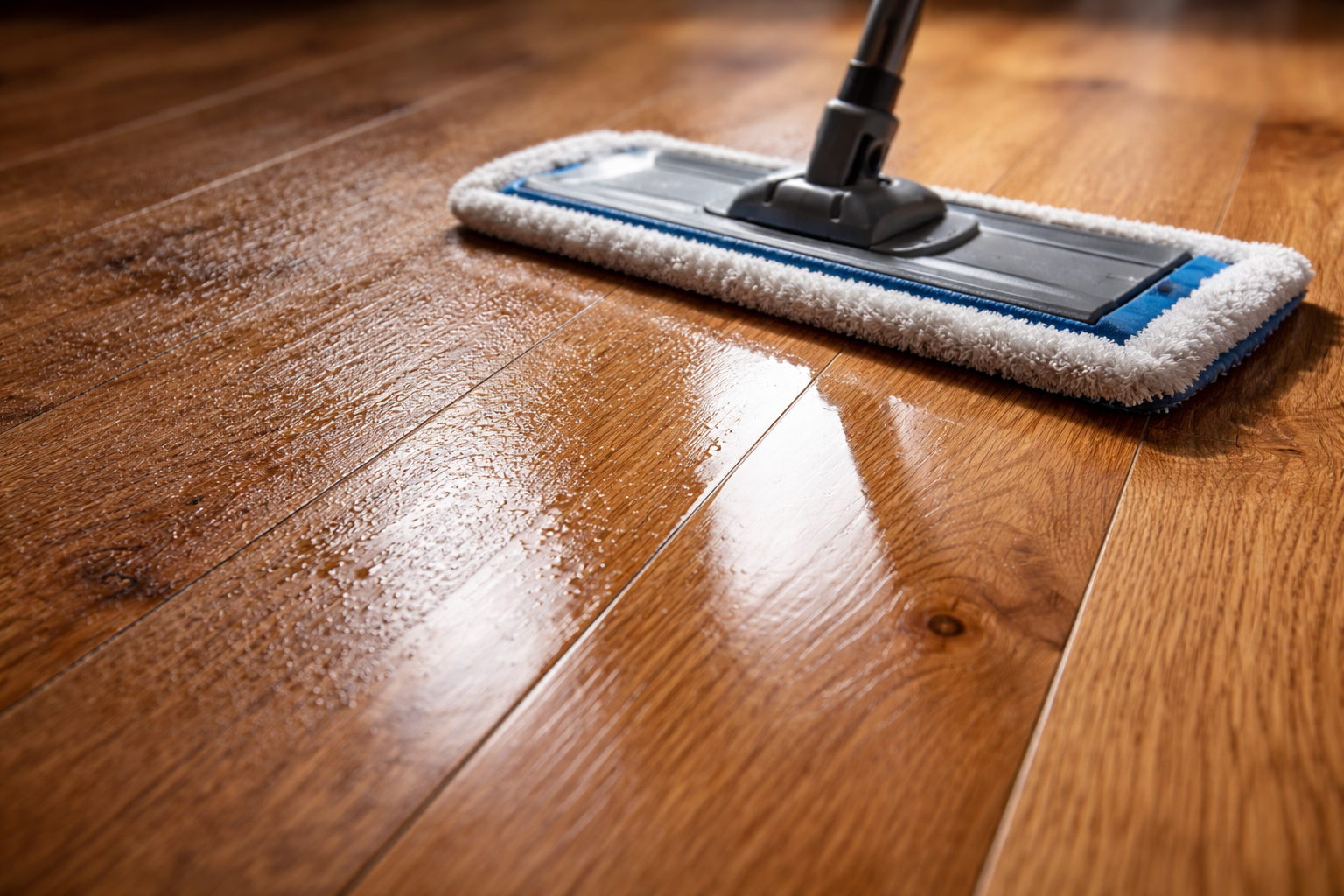 Mutați mopul de-a lungul fibrelor lemnului, nu peste.