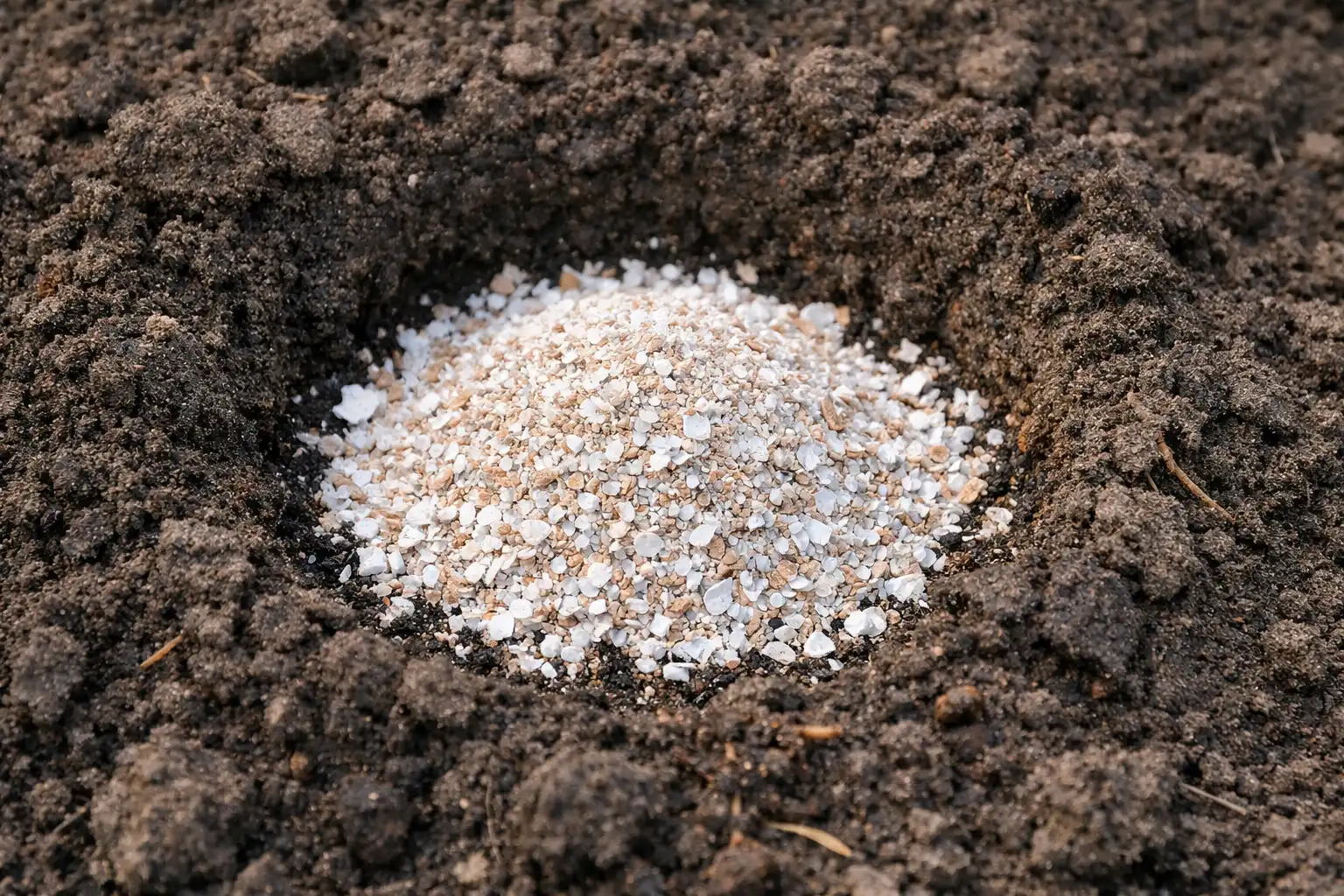 Turnați pulberea direct în gaură atunci când plantați răsadurile.