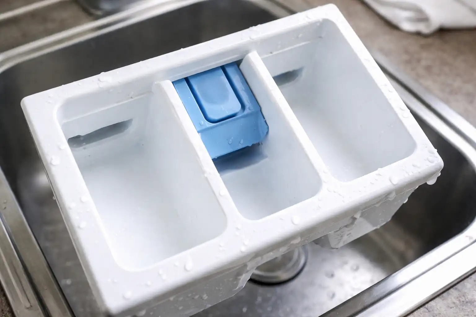 Curățenia acestui nod afectează în mod direct calitatea clătirii hainelor. Când balsam de rufe se amestecă cu reziduurile de substanțe chimice vechi, pe haine pot apărea pete albe, care sunt dificil de îndepărtat.