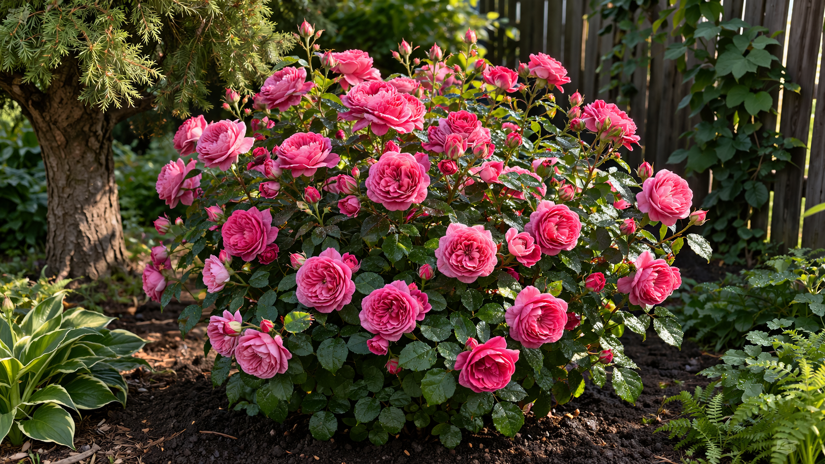 Hibrizii de trandafir moscat și soiurile vechi de parc au o toleranță genetică excelentă la umbra penumbrei.