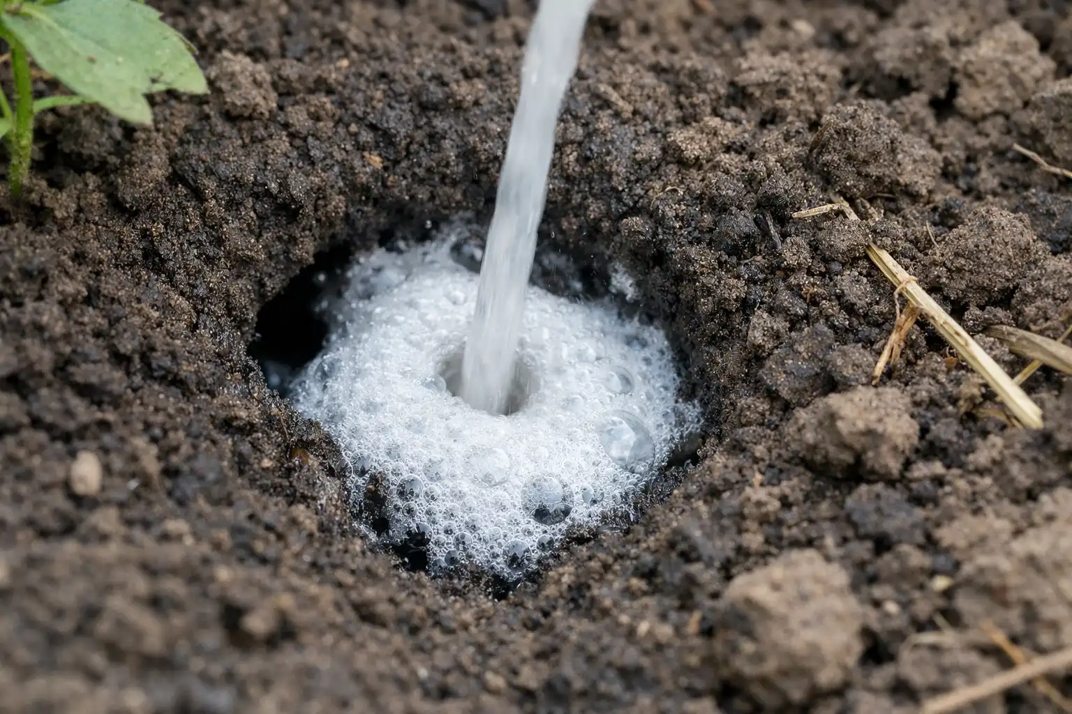 – Turnați amestecul de lichid alcalin direct în gaură, asigurându-vă că pătrunde adânc.
