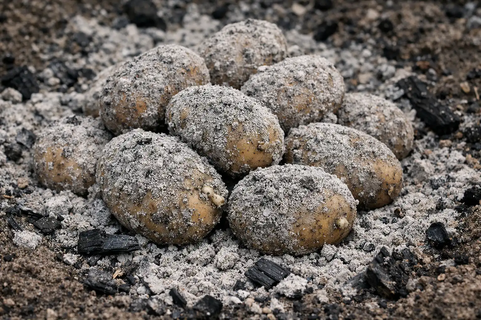 Cenușa de lemn conține potasiu, calciu și fosfor într-o formă care este absorbită instantaneu de către plantă. Prin aplicarea acestei tehnici, pe suprafața cartofului se formează o capsulă protectoare. Această metodă ajută la igienizarea microfisurilor și, datorită unor proprietăți fungicide puternice, blochează dezvoltarea bolilor precum phytophthora înainte ca acestea să compromită cultura.
