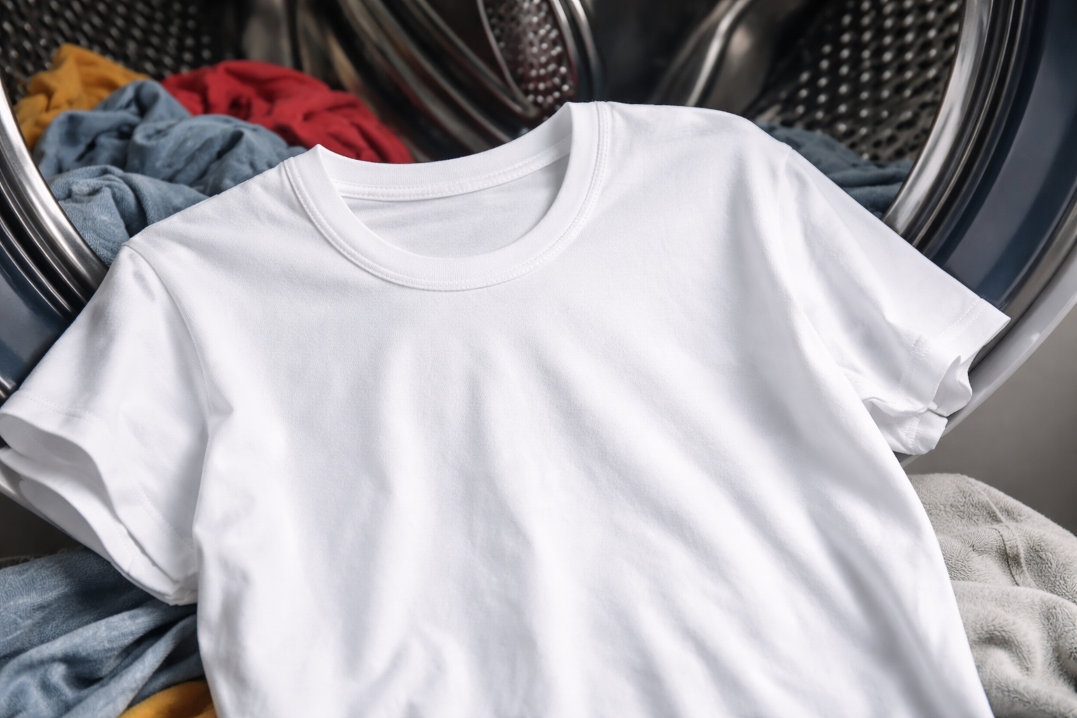 Colorantul liber se depune pe obiectele de culoare deschisă învecinate direct în tambur