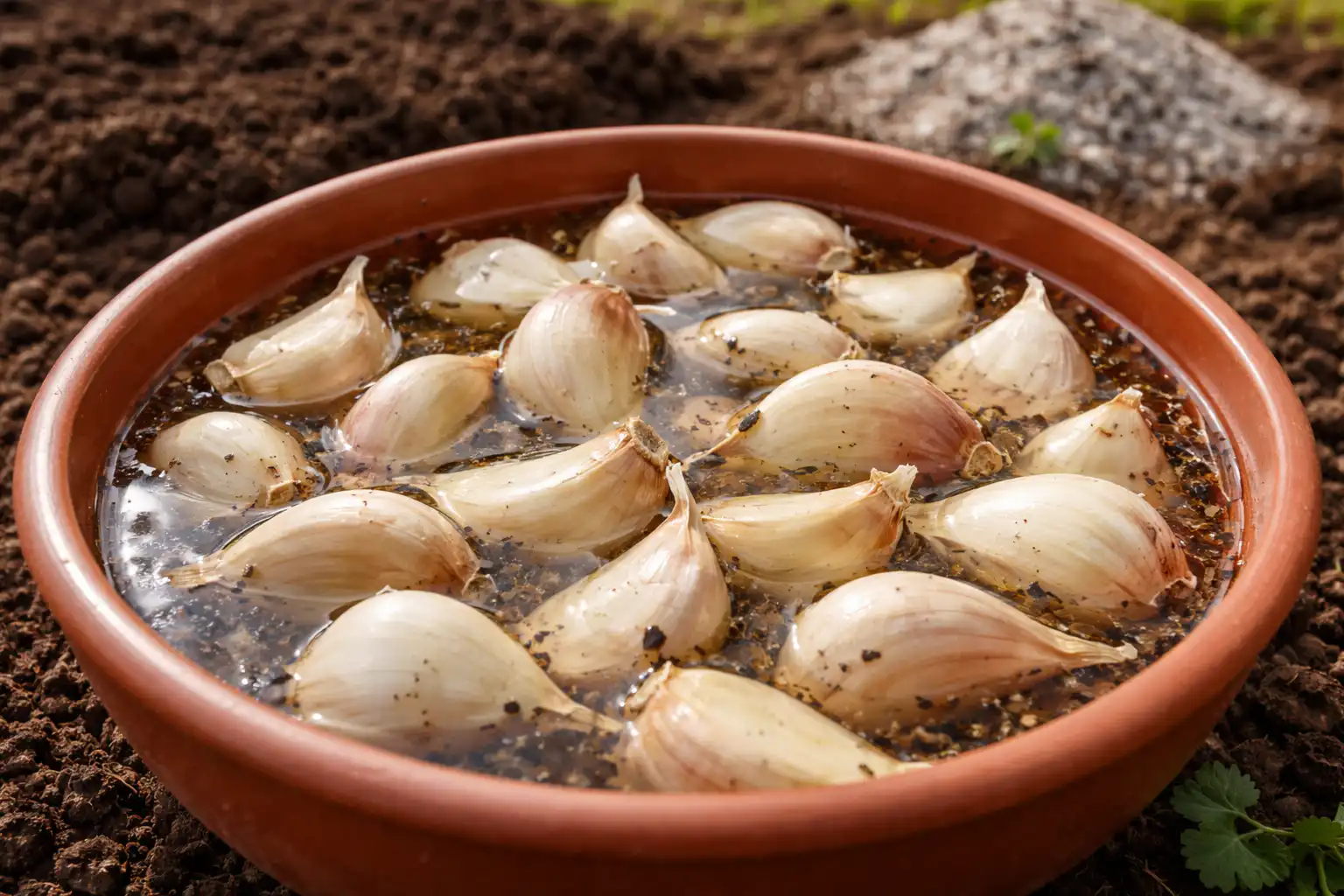 Principala mea nuanță secretă este să înmoi în prealabil cuișoarele într-o infuzie călduță de mușețel cu o mână de cenușă timp de strict patruzeci de minute înainte de a le cufunda în pământ.