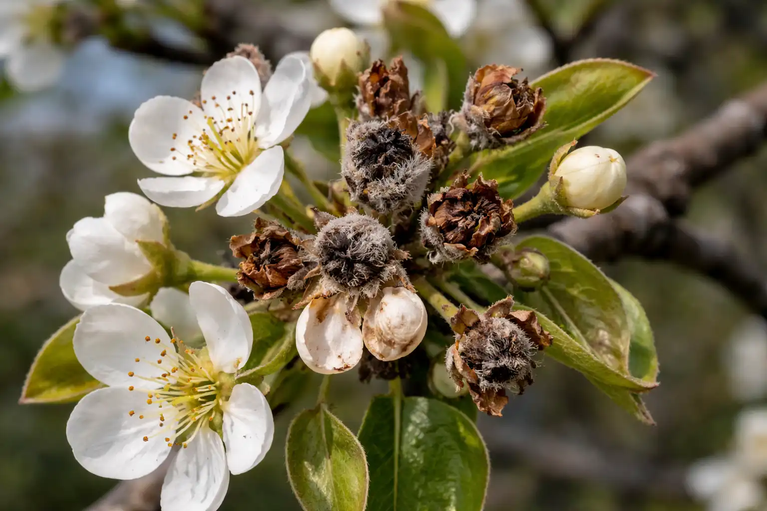 Dacă parul dumneavoastră înflorește regulat, dar nu produce fructe, fiți atenți la arsura moniliozei. Această boală pătrunde prin stigmatul pistilului direct în lemn.
