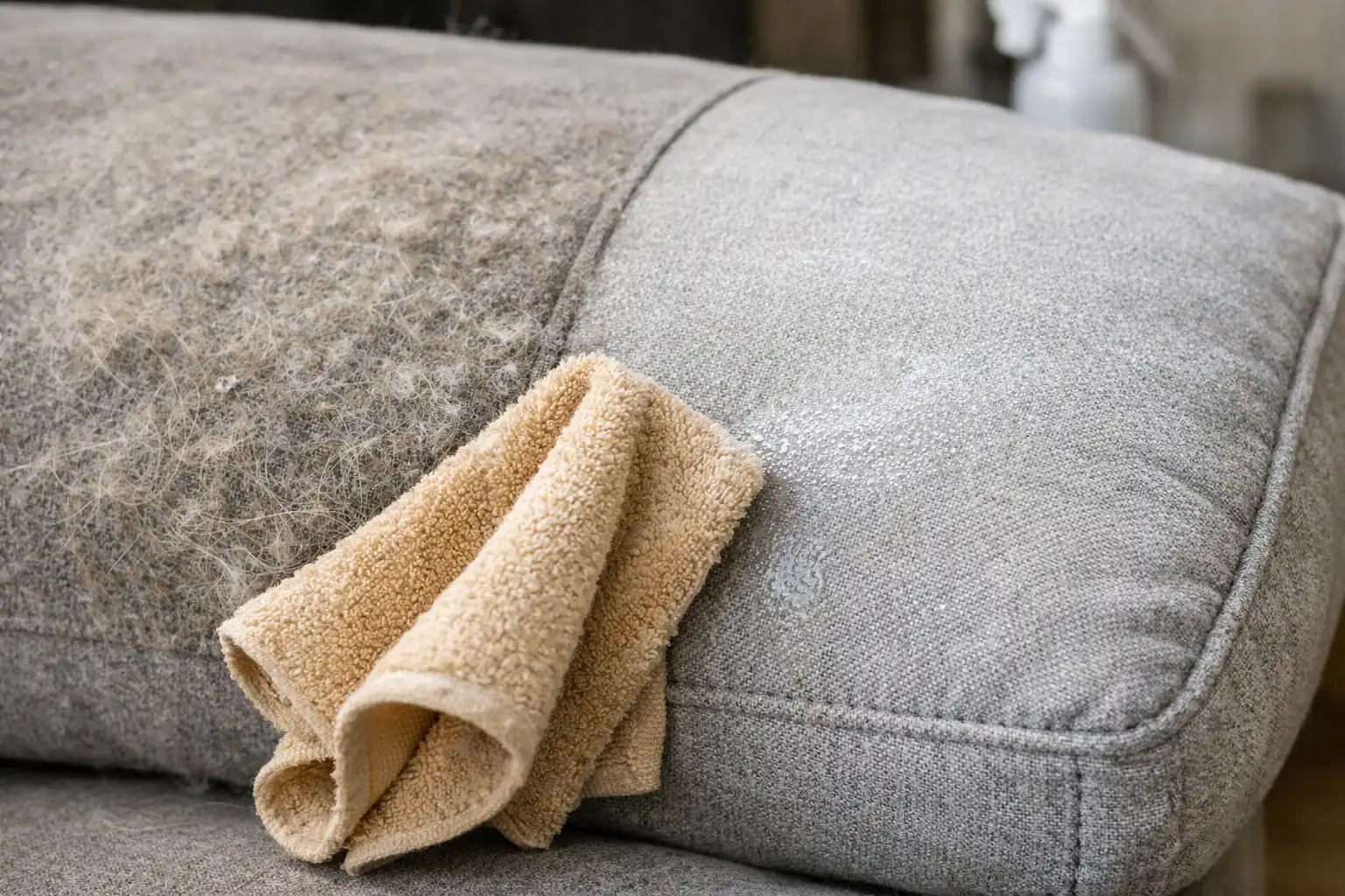 Nuanță secretă: nu spălați niciodată părul de pisică și petele de animale cu apă fierbinte, deoarece temperatura ridicată sigilează literalmente proteinele mirositoare adânc în fibrele țesăturii.