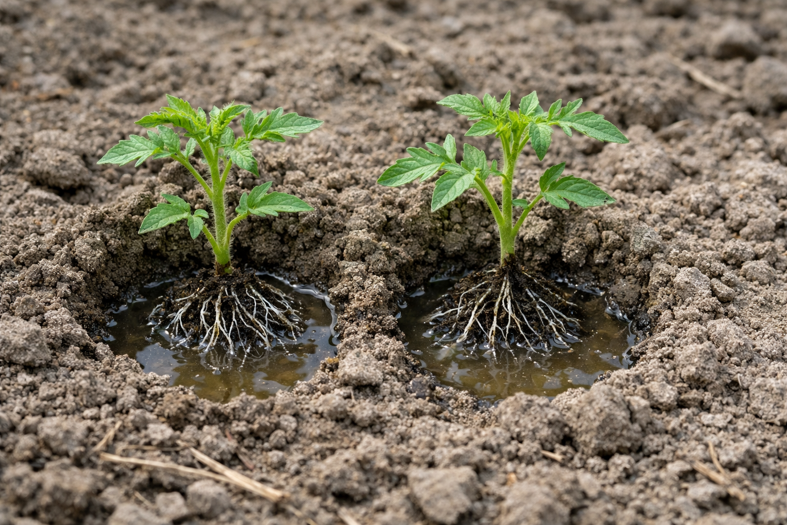 Când o sămânță intră într-un mediu bogat, nu are nicio motivație să dezvolte rădăcini. Planta devine leneșă și își împinge toată forța spre vârf, ceea ce face ca tulpina să se subțieze și să cadă. Într-un mediu sărac, instinctul natural de supraviețuire este la lucru.
