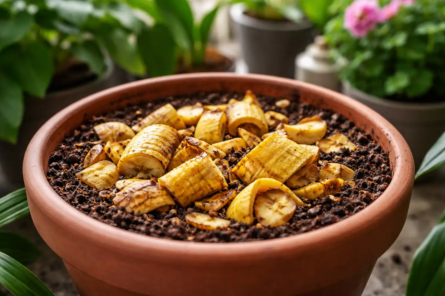 Comun coajă de banană – nu este doar un produs rezidual, ci un concentrat de substanțe nutritive necesare pentru sisteme radiculare sănătoase și frunze viu colorate. Aceasta conține micronutriențipe care plantele îi asimilează mult mai ușor decât din granulele achiziționate.
