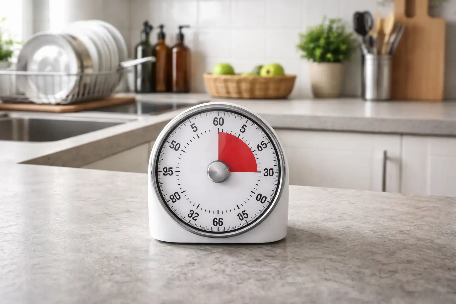 Orice cronometru mecanic de bucătărie sau aplicația standard de ceas de pe smartphone este perfect adecvată.