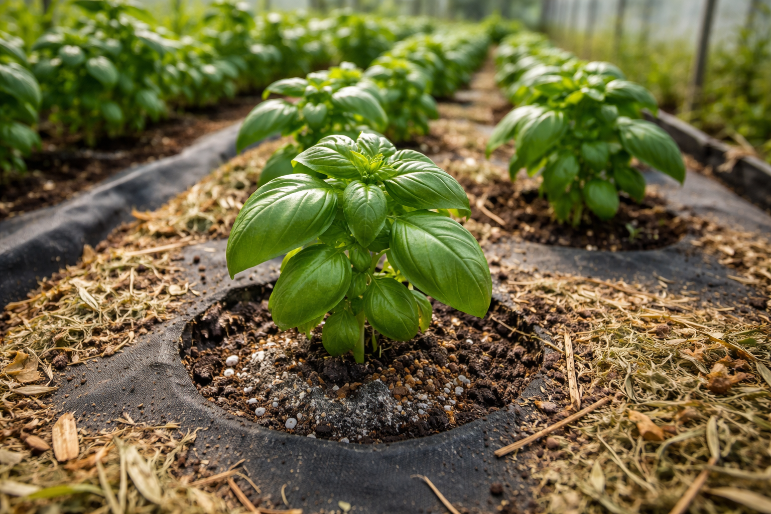 Folosiți un strat subțire de mulci organic pentru a reține umiditatea la rădăcini