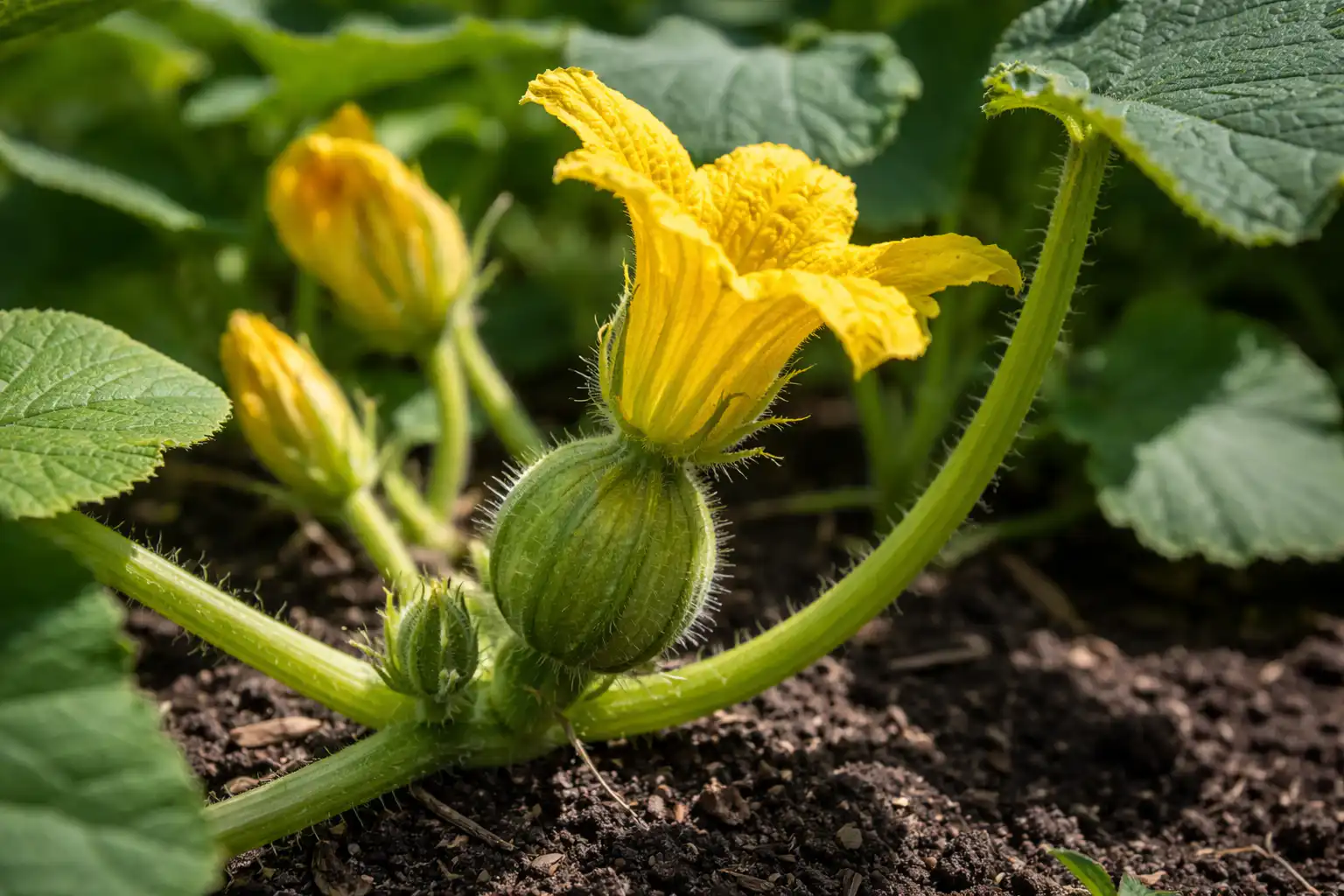 Floarea feminină are o îngroșare vizuală vizibilă la baza sa sub forma unui dovleac rotund minuscul.