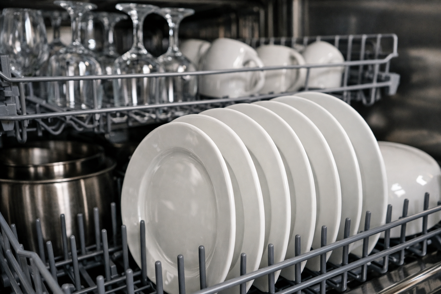 | Nivel inferior | Tigăi, oale, cratițe, farfurii grele | Așezați în unghi, cu murdăria mare îndreptată spre centru |