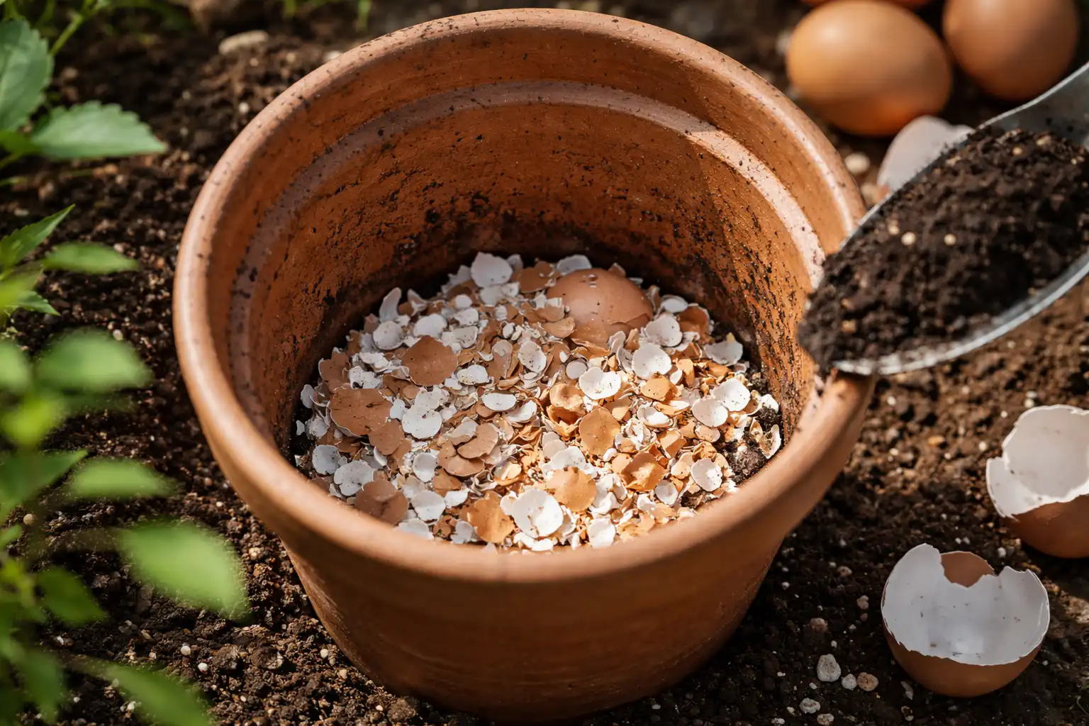 Dacă cojile sunt zdrobite moderat, ele nu sunt periculoase pentru sistemul radicular.
