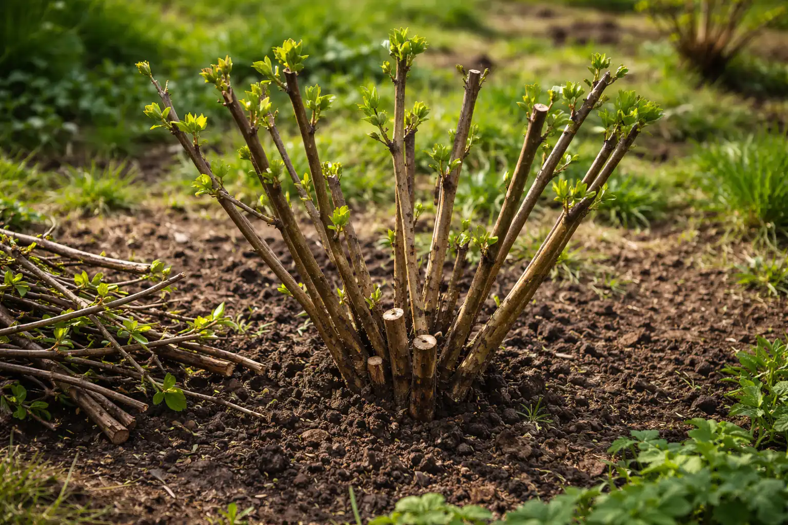 Lăsați câțiva dintre cei mai puternici lăstari zero pe tufă pentru înlocuirea viitoare a trunchiurilor vechi