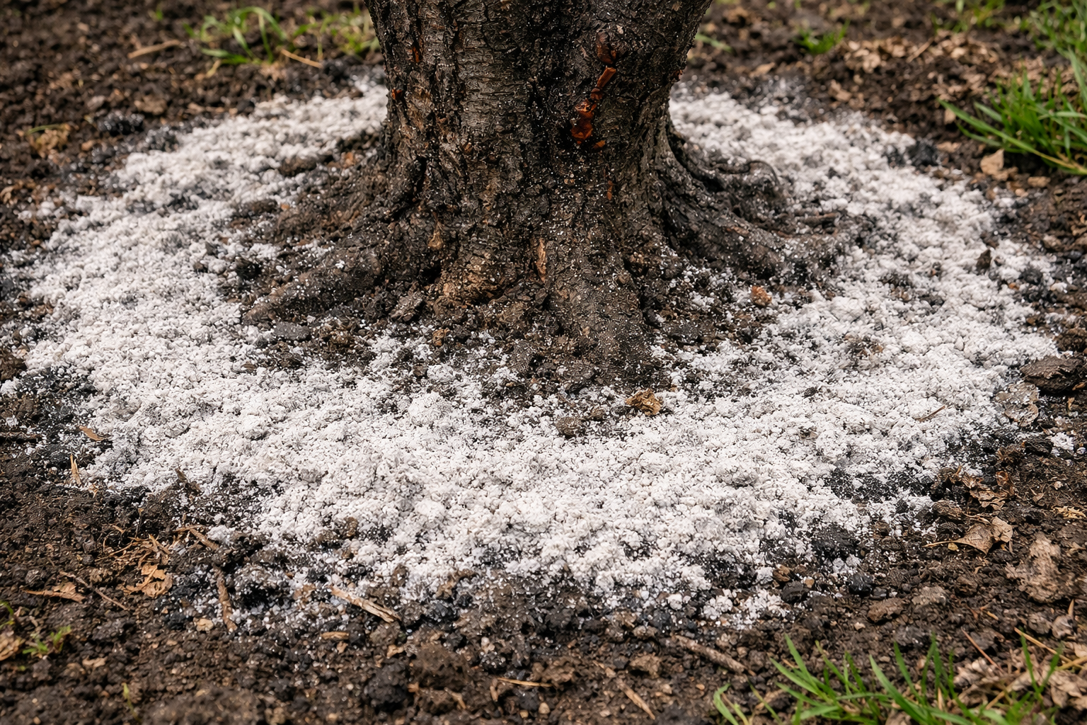 Pentru o mai bună absorbție a mineralelor, împrăștiați remediul în jurul întregului perimetru al coroanei, adâncindu-vă la o jumătate de metru de trunchiul propriu-zis. La marginile coroanei se află rădăcinile subțiri sugătoare subterane, care sunt cele mai active în absorbția nutrienților.