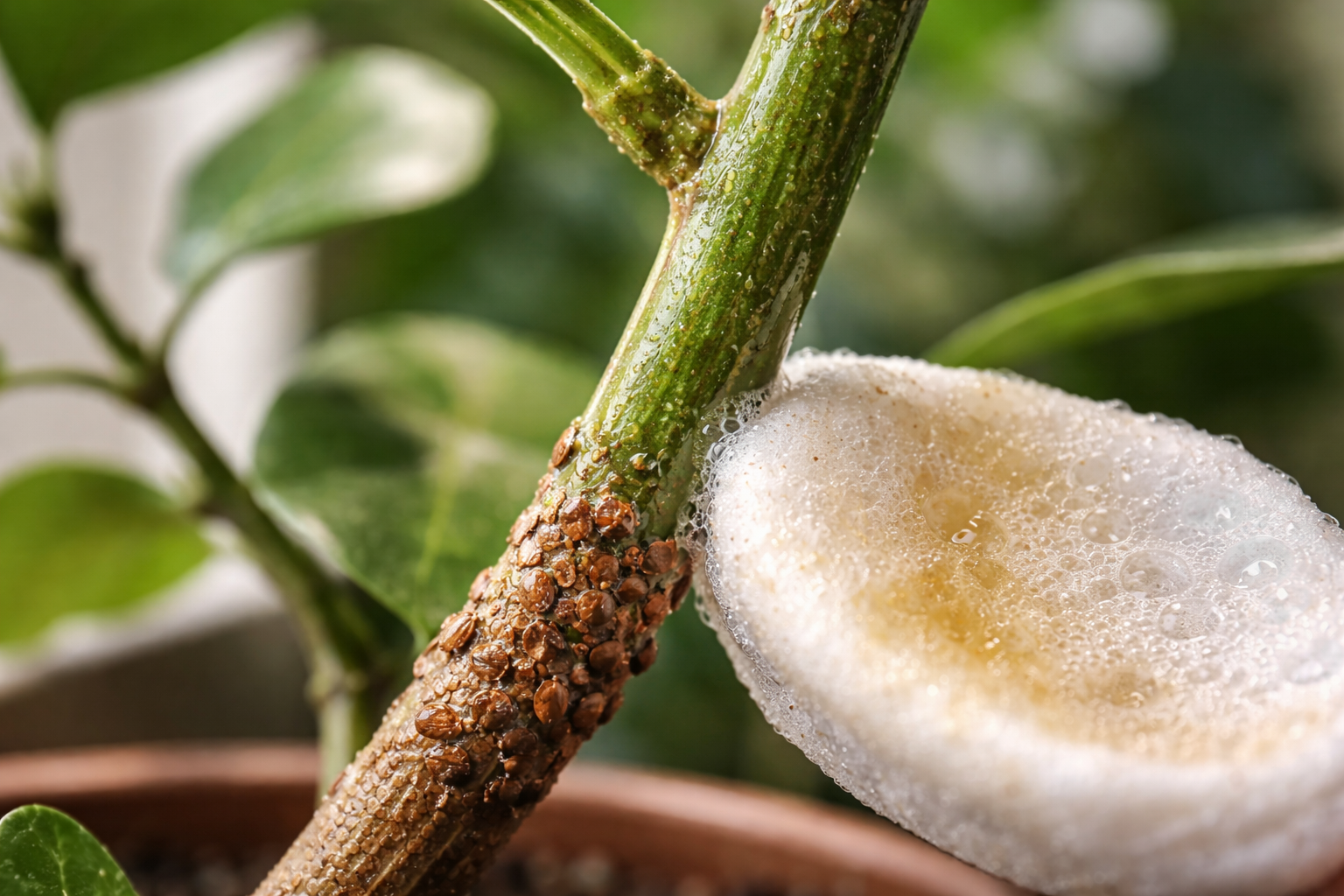 Procesul începe cu îndepărtarea cu atenție a cochilii insectelor cu o perie înmuiată într-o soluție slab alcoolică sau în apă cu săpun. Acordați o atenție deosebită axilelor frunzelor și părții inferioare a plăcii foliare de-a lungul nervurilor.