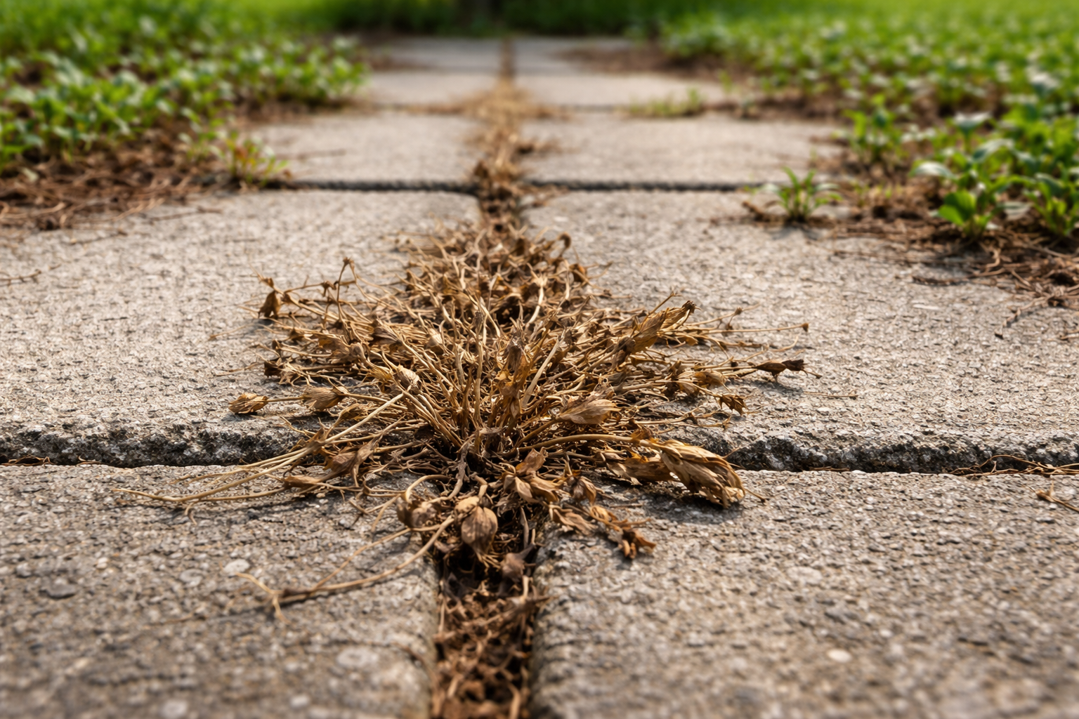 Cel mai rapid mod de a elimina excrescențele dintre dale sau de pe aleile din grădină este să folosiți un acid concentrat de origine naturală. Oțetul de masă obișnuit distruge membranele celulare ale lăstarilor nedoriți, determinându-le să se micșoreze rapid.