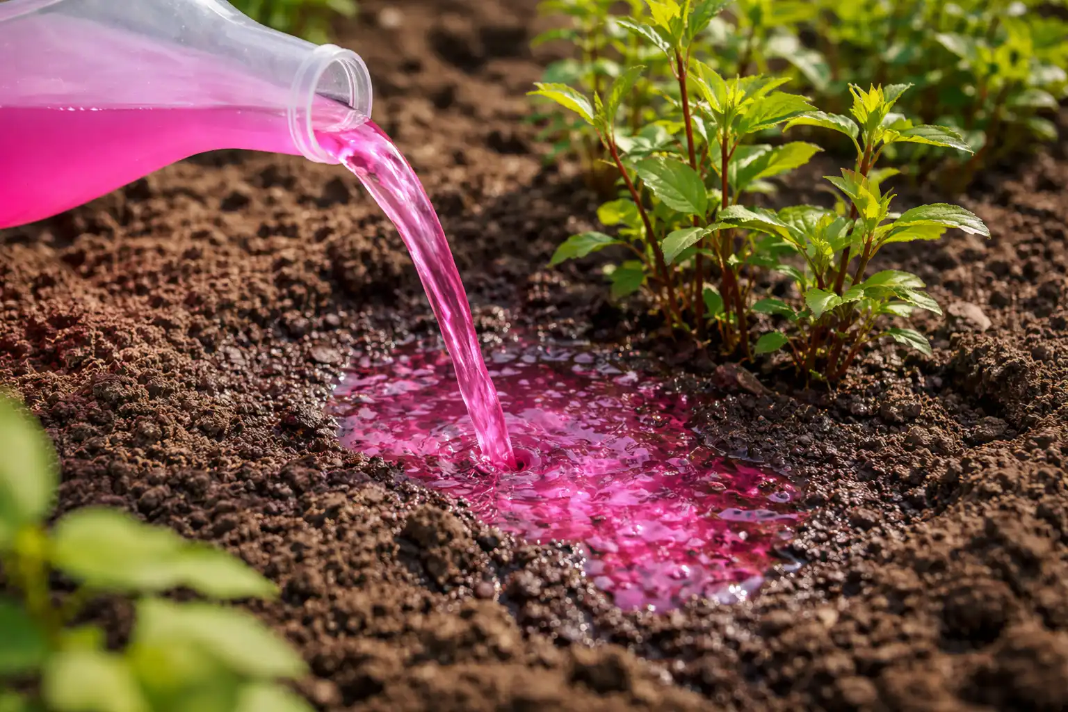 Nu turnați niciodată cristale uscate direct pe pat. Pregătiți întotdeauna licoarea-mamă într-un recipient separat și adăugați-o la recipientul de udare, controlând strict culoarea finală a lichidului.