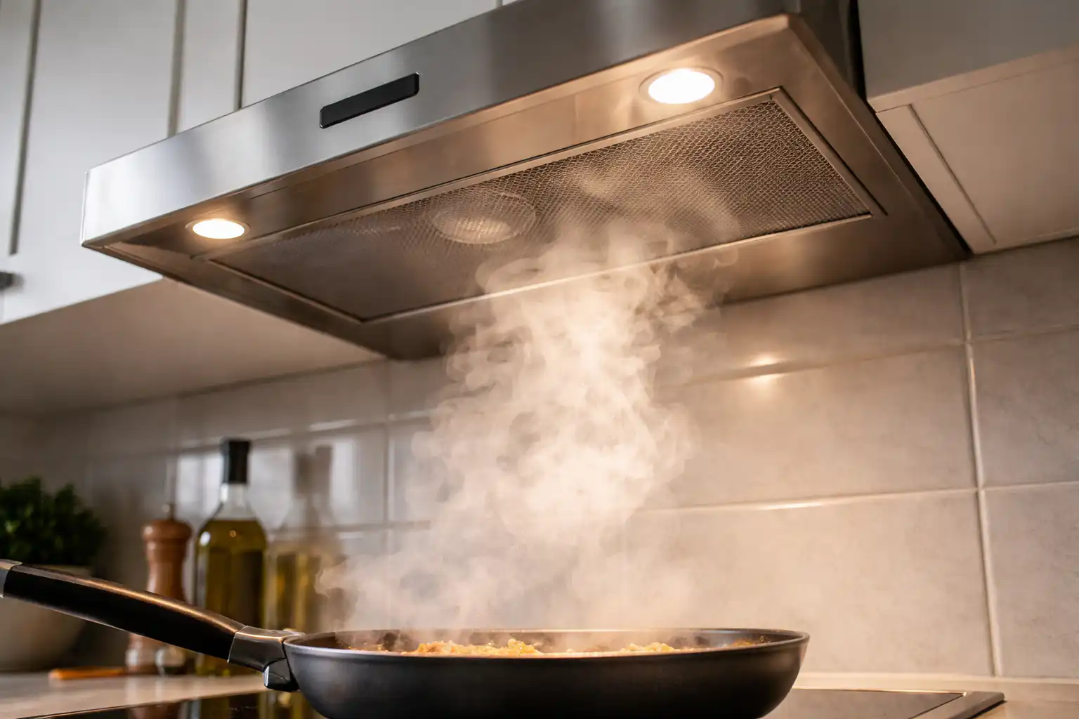 Mulți oameni sunt obișnuiți să apese butonul de pornire a ventilației doar atunci când aburul gros se ridică deja deasupra cratiței. Aceasta este o greșeală fatală care provoacă filtru de grăsimi pur și simplu nu are timp să capteze toți vaporii. Fizica procesului necesită timp pentru a crea un coridor de aer stabil. Dacă dispozitivul este pornit în prealabil, se formează un flux aerodinamiccare va funcționa apoi ca o cupolă invizibilă.