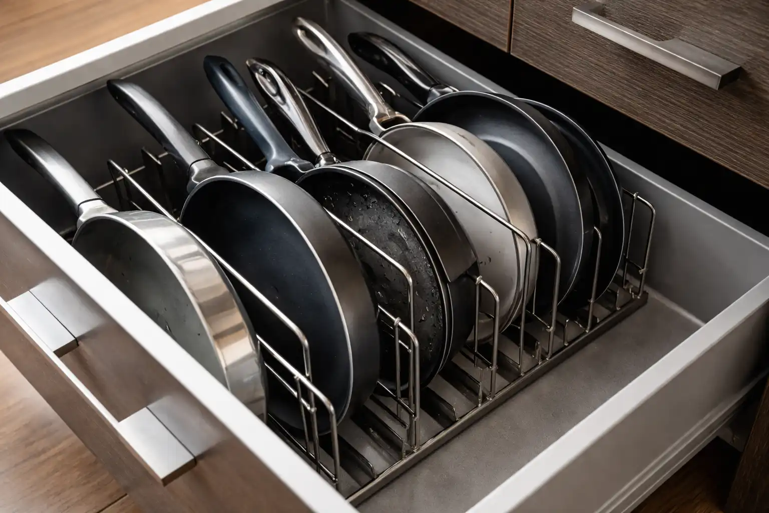 De fiecare dată când încercați să scoateți cratița potrivită din grămadă, bucătăria dvs. este plină de zgomot, iar ustensilele scumpe rămân cu urme de frecare. Puteți să vă păstrați dulapurile într-o ordine perfectă și să vă protejați acoperirea antiaderentă fără a cumpăra sisteme complexe, folosind principii ergonomice simple și metode dovedite de separare a articolelor.