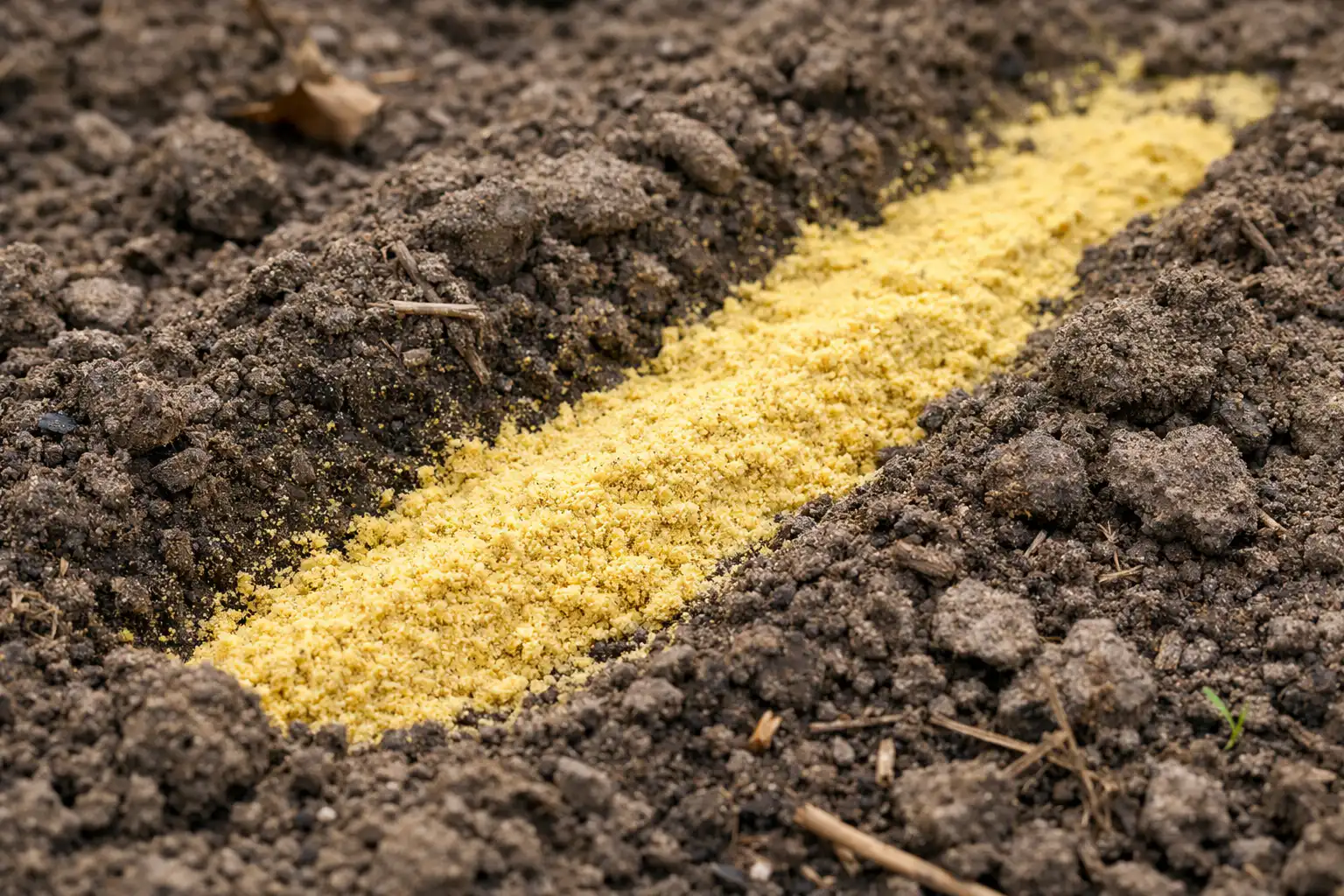 Pulberea de muștar se toarnă direct în găuri la plantare.
