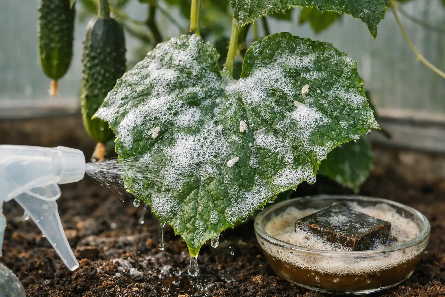 Cea mai eficientă soluție pentru a elimina musca albă de pe castraveți este aplicarea unui tratament combinat: utilizarea capcanelor adezive galbene pentru adulți și pulverizarea regulată a frunzelor cu o soluție de săpun de gudron, care distruge larvele și oprește ciclul de reproducere fără a afecta calitatea fructelor.
